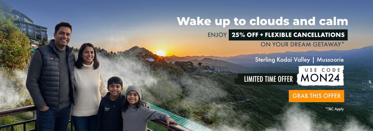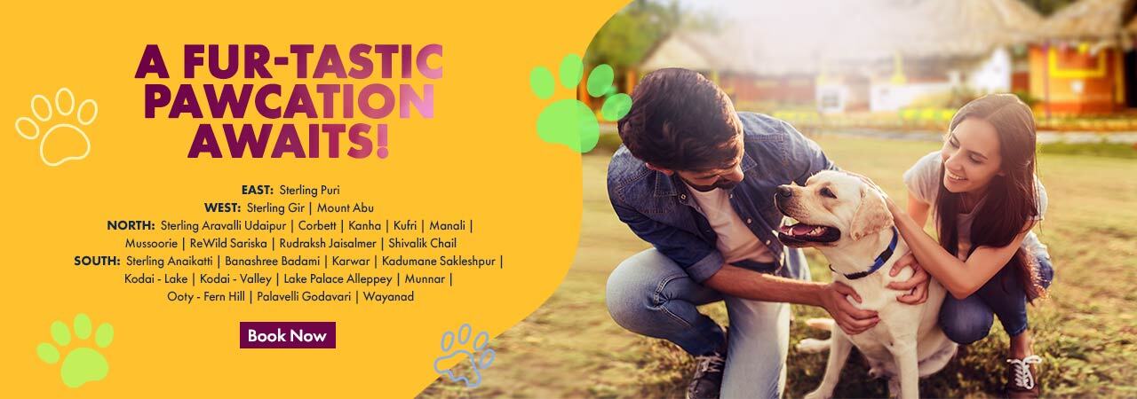 Experience a paw-some getaway with your furry friend at Sterling Holidays! We gladly welcome pets, making it a perfect vacation for both you and your beloved pet. Sterling pet-friendly resorts offer specially designed rooms for your furry companions, a curated pet menu to satisfy their taste buds, earmarked pet zones for playtime, and our staff is trained to cater to your pet's needs. So pack your bags and come holiday with your fur-friend at Sterling Holidays today!